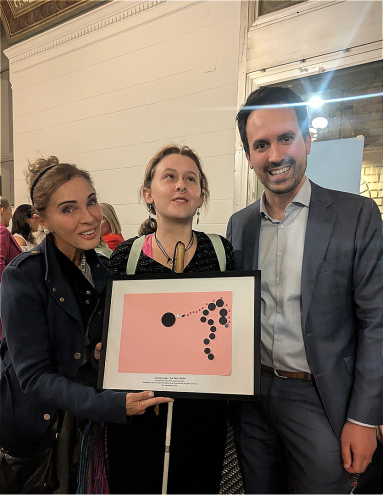 "Während der Ausstellungseröffnung "Ich Lese_ Ich Schreibe_ Ich Bin" zum Jubiläum 200 Jahre Blindenschrift in Wien Schellinggasse, präsentierte Xenia Zeiler ihr Kunstwerk "Sonnenregen ^ Sunshower", welches sie im Kunst-Café im Hundertwasserrhaus Wien beim Workshop zur Feier des Europäischen Tages der Sprachen kreierte.